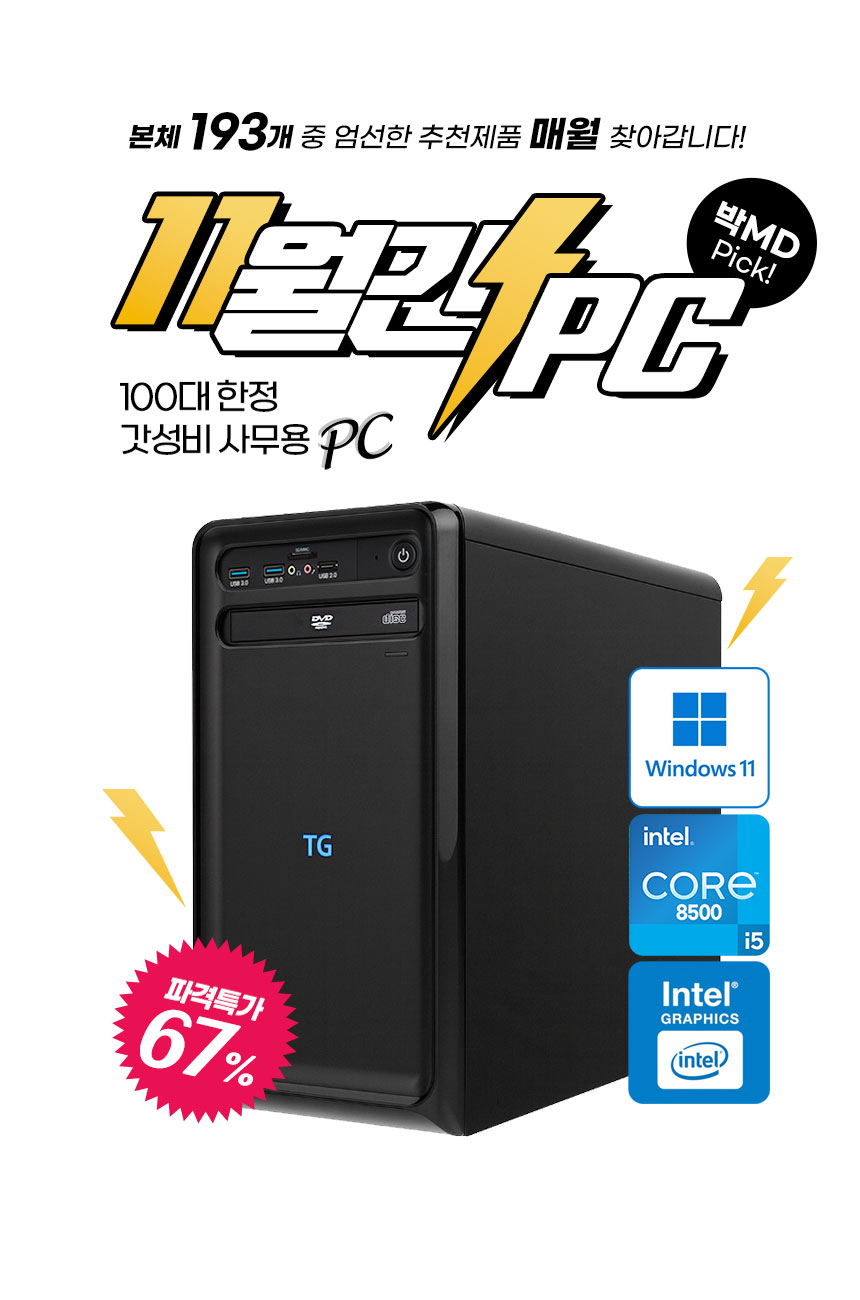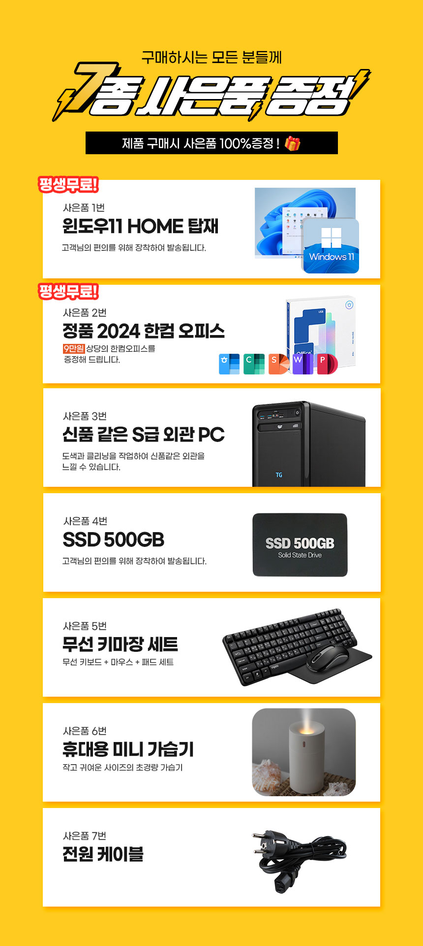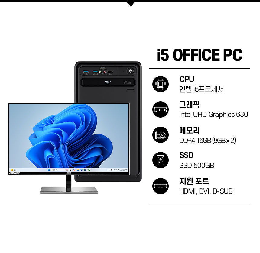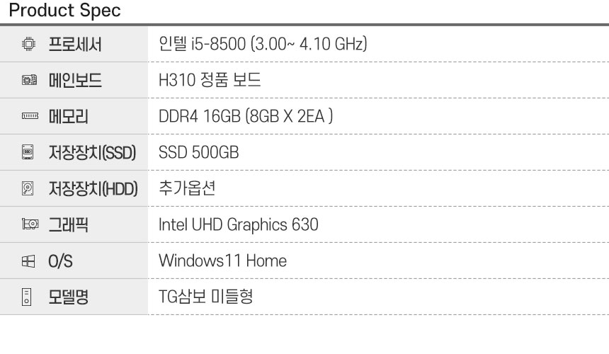 커피레이크 i5 8500/인텔 UHD 630/DDR4 16G(8Gx2개)/SSD 500G/윈도우11Home/한컴오피스2024/무선 키보드+마우스+패드/전원케이블