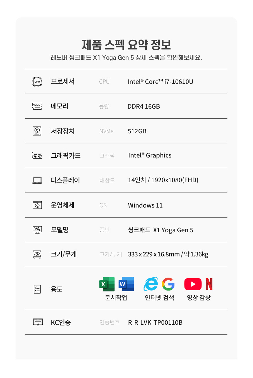 i7-10610U/16G/512G/내장그래픽/14인치/1920x1080/윈도우11