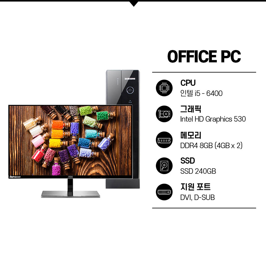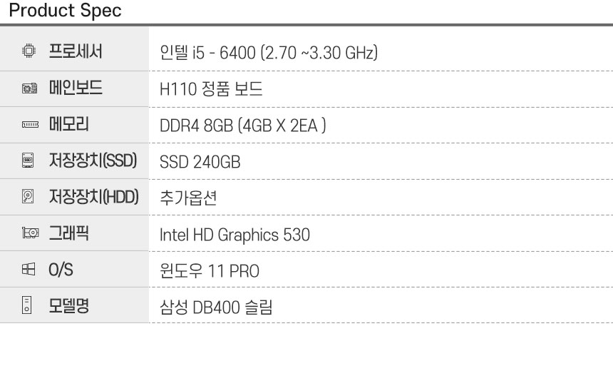 스카이레이크 i5 6400/램 DDR4 8G/SSD 240G/Intel HD Graphics 530/윈도우11 PRO/듀얼모니터 지원/한컴오피스 2024 증정