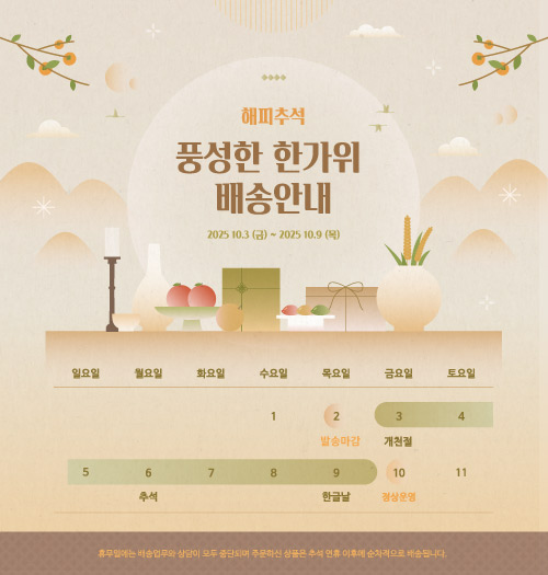 연휴가 긴만큼 순차배송으로 인하여 지연되는 부분 양해 부탁드립니다.