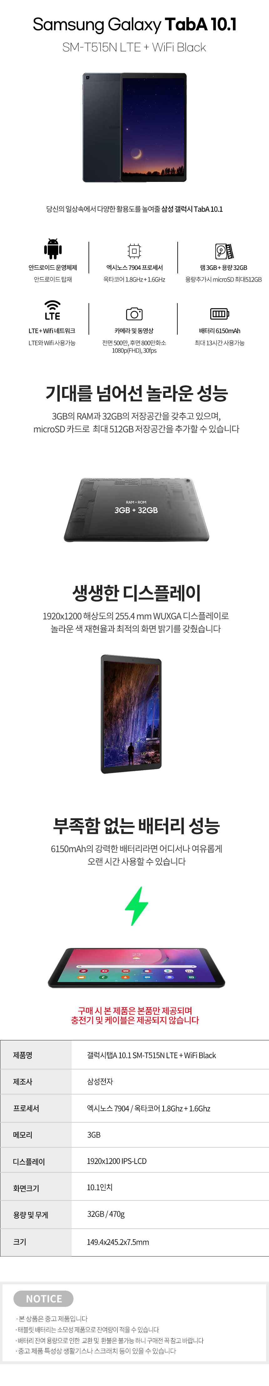 램 3G / 저장공간 32G / 10.1인치 / LTE+WIFI / 블랙