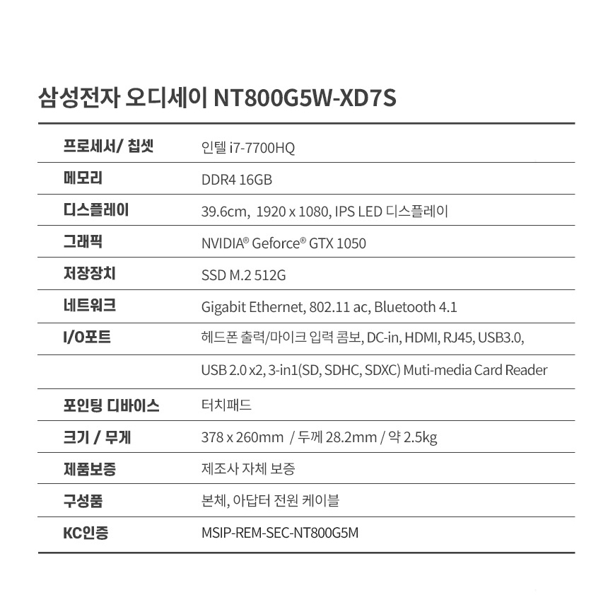 모델명 : 삼성전자 오디세이 NT800G5W-XD7S