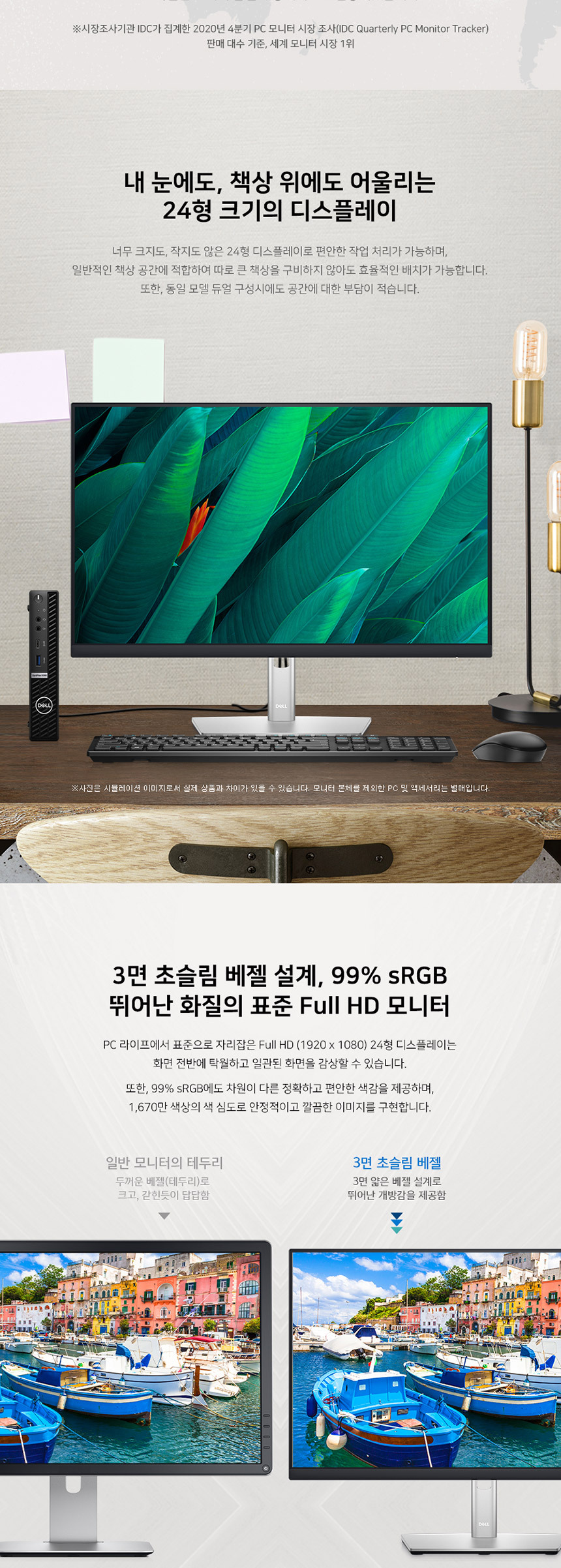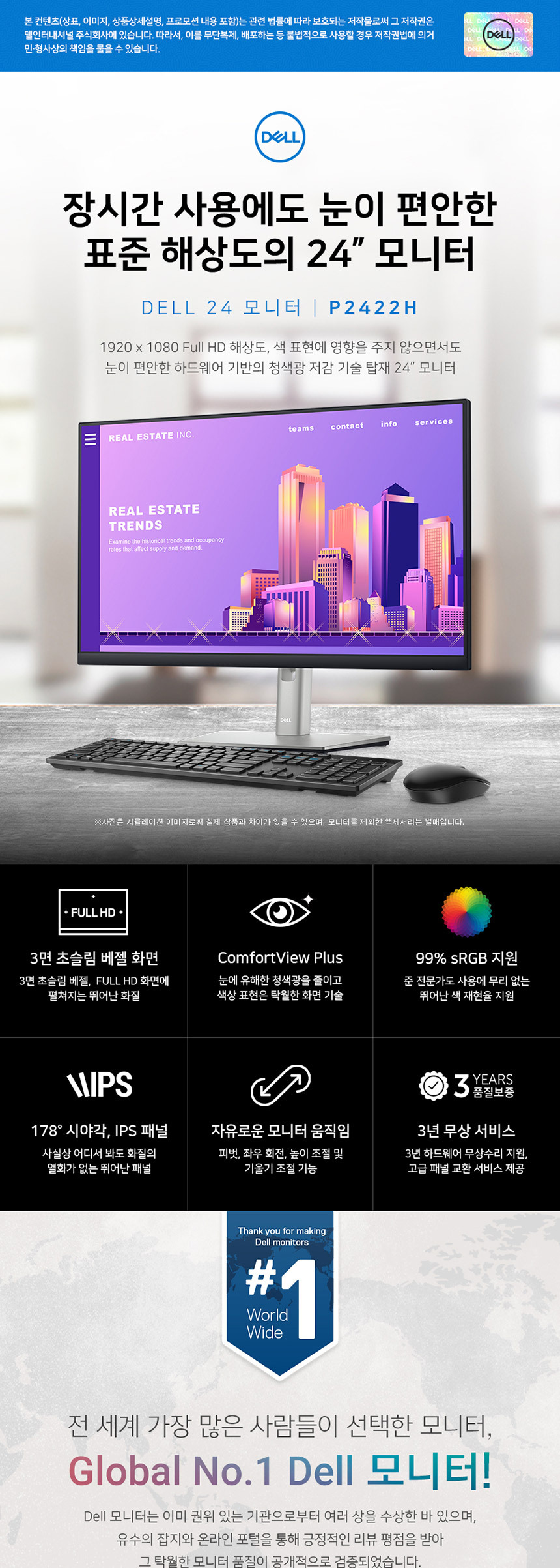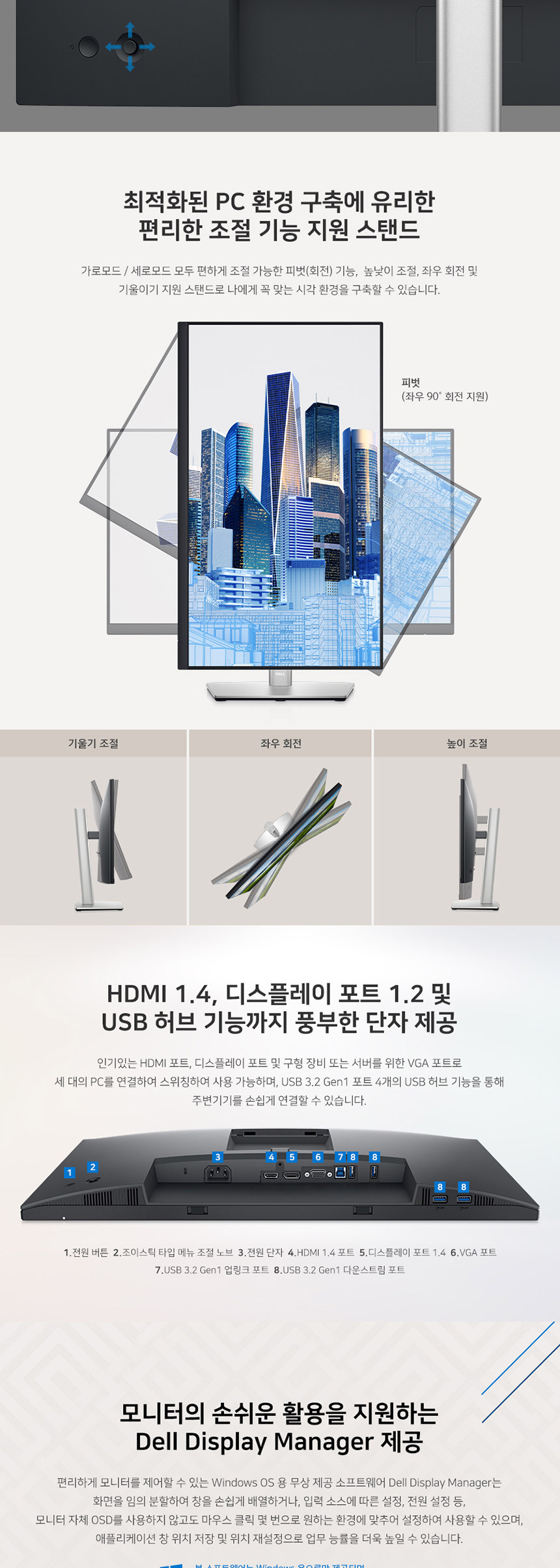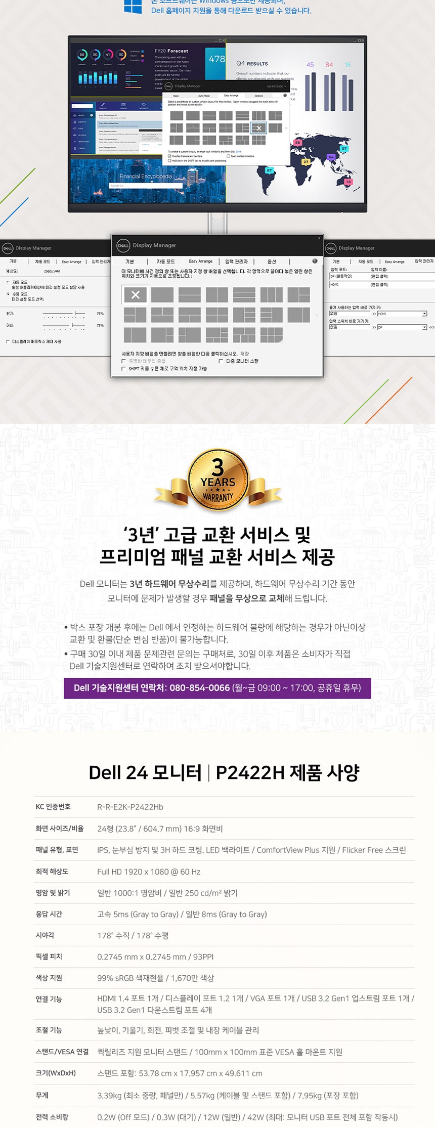 DELL 24인치 P2422H IPS FHD 피벗 높낮이 다각도 조절 와이드 모니터