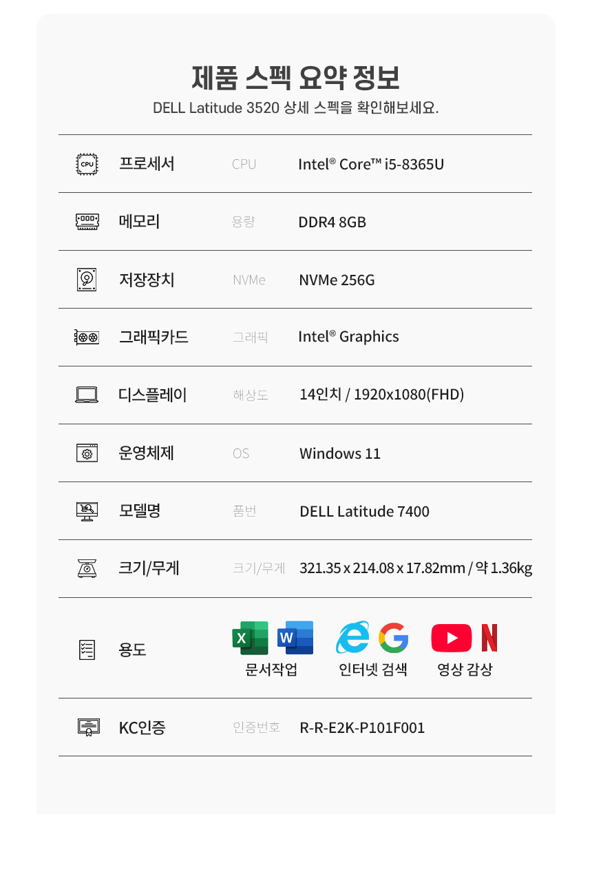 [사무용 초특가] DELL 8세대 사무용 14인치 노트북