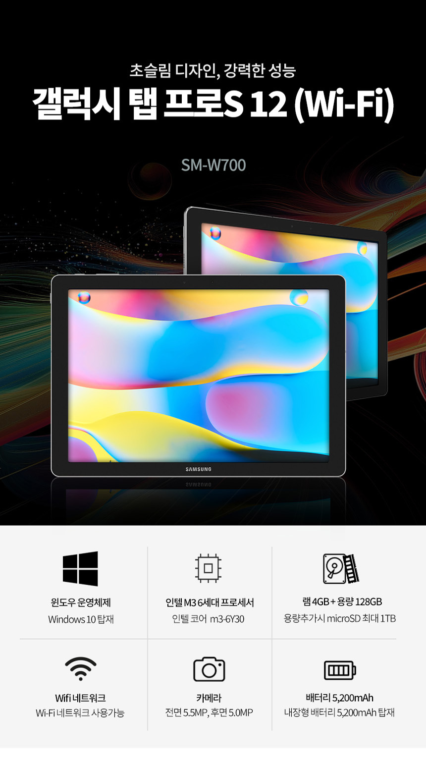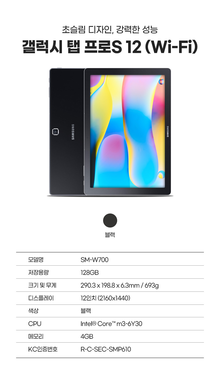 삼성전자 갤럭시탭 프로S 12 WiFi 128GB 블랙 SM-W700