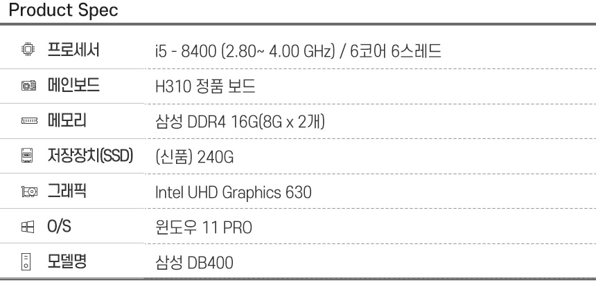 커피레이크 I5 8400/메모리 16G/SSD 240G/Intel UHD Graphics 630/윈도우11 PRO/한글오피스2024증정