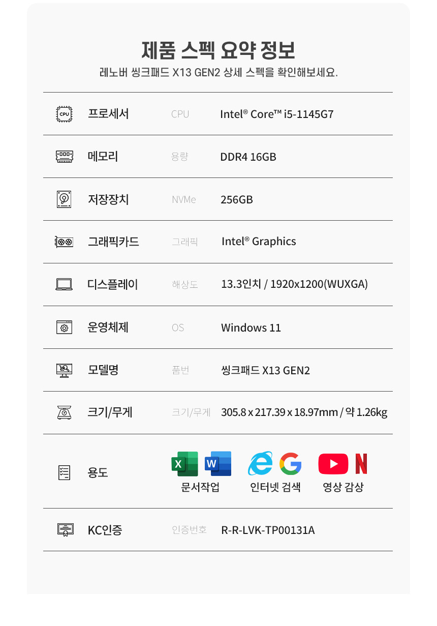 [소량 입고 특가] 레노버 인텔 11세대 코어i5 13.3인치 X13 Gen2
