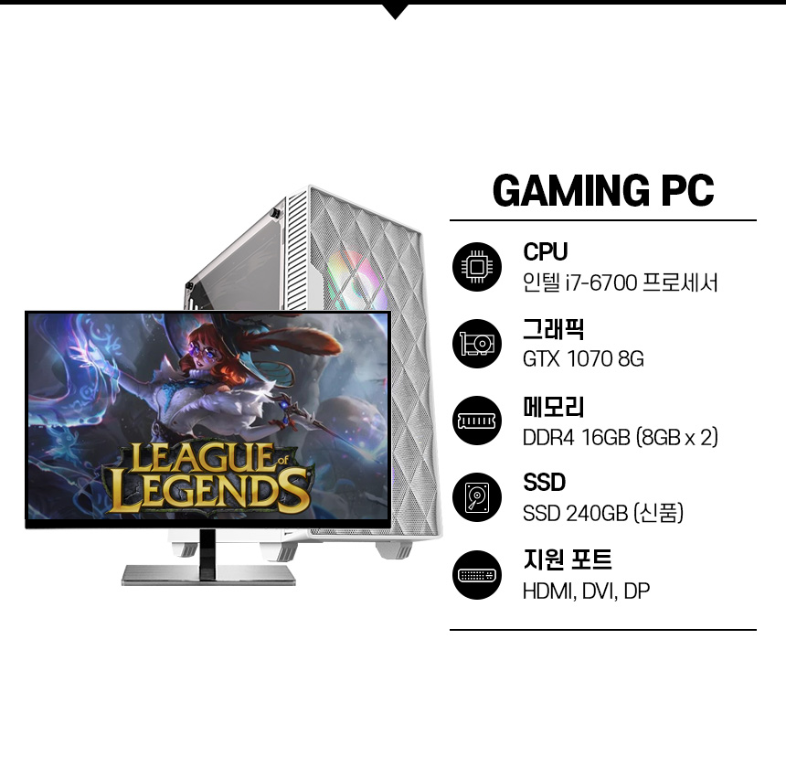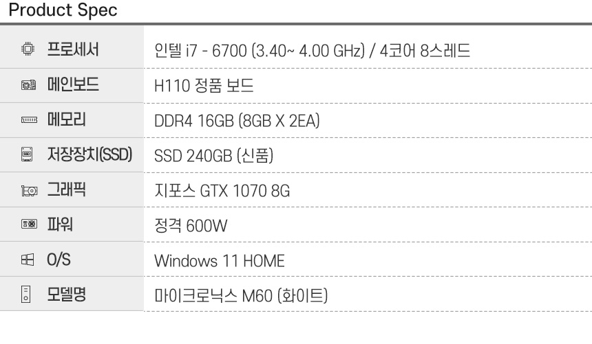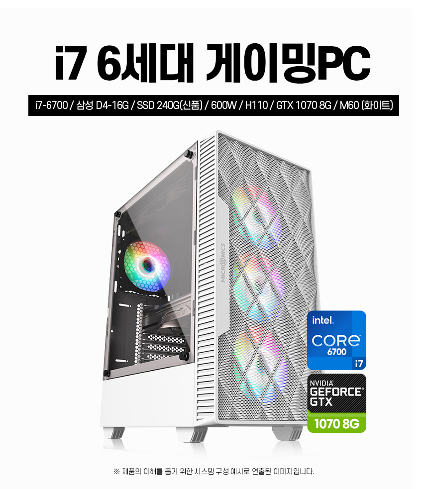 스카이레이크 i7 6700/메모리 16G/SSD 240G/지포스 GTX1070 8G/600W/[마이크로닉스] M60 화이트/듀얼모니터 지원