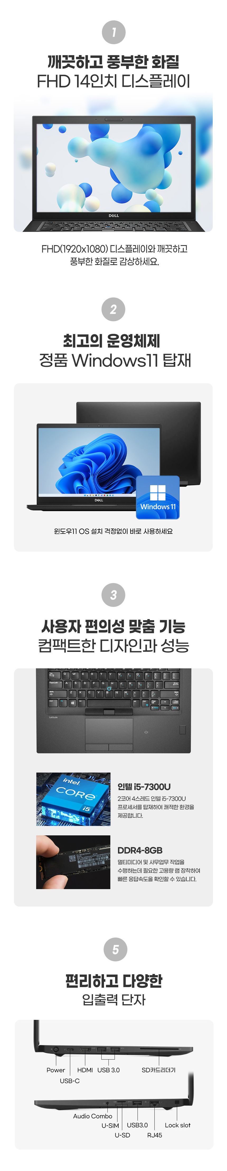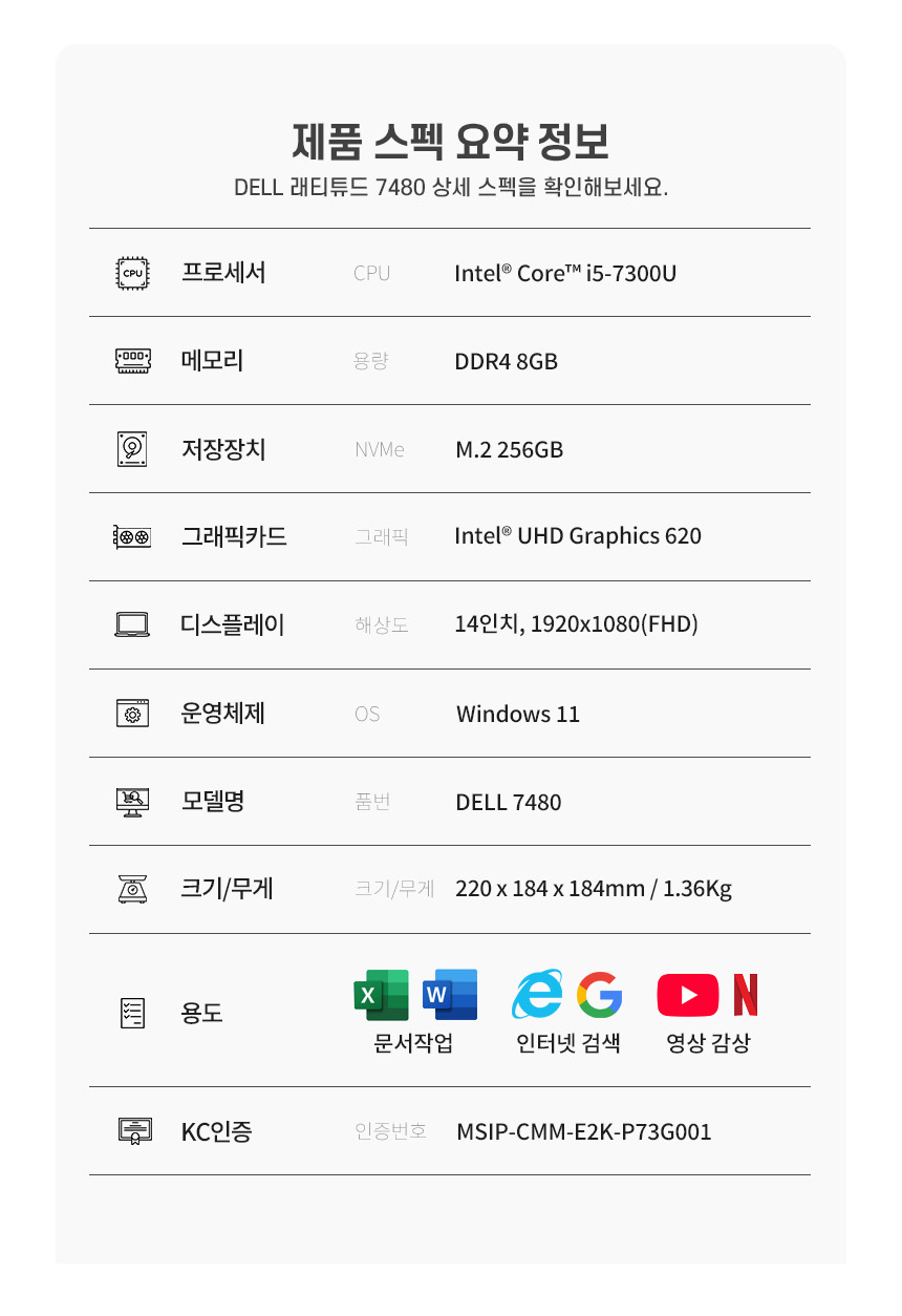 i5-7300U/D4 8G/SSD M.2 256G/14인치/1920x1080/Intel® HD Graphics 620/윈도우11