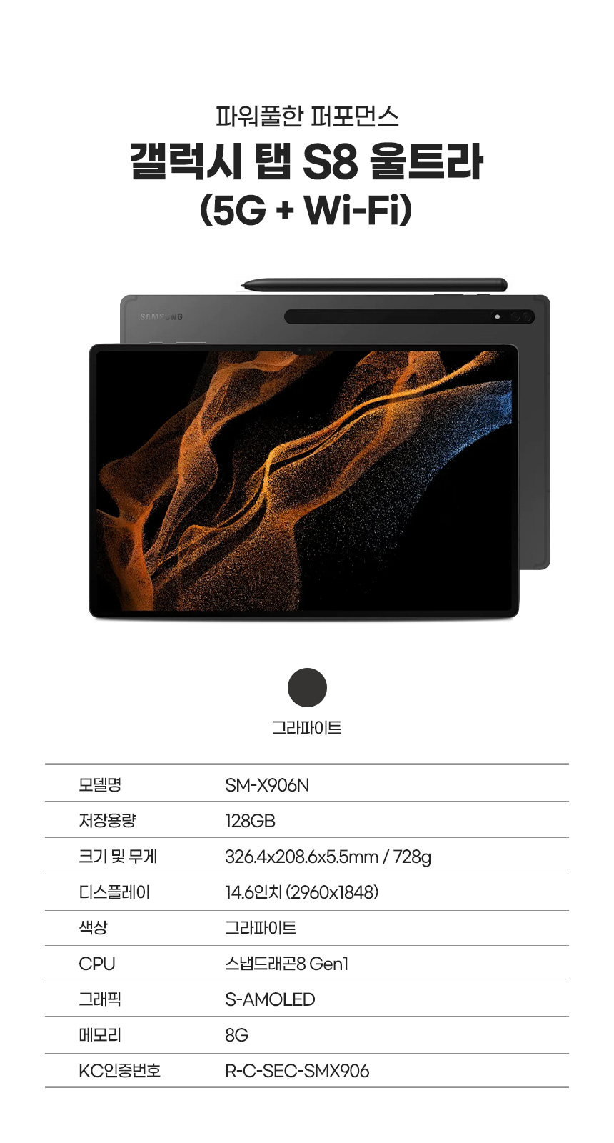 삼성 갤럭시탭S8 울트라 5G 128GB SM-X906N