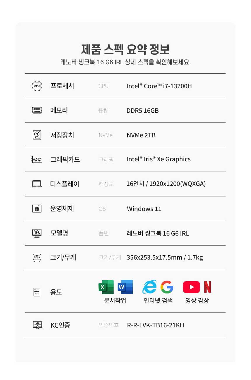레노버 씽크북 16 G6 IRL 윈도우11 SSD 2TB