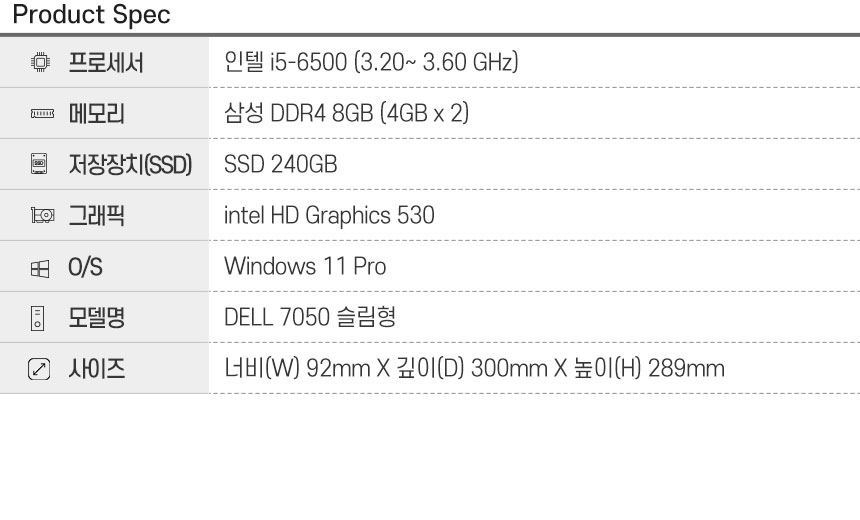 스카이레이크 i5 6500/메모리 8G/SSD 240G/HD 530/윈도우11 PRO/듀얼 모니터 지원