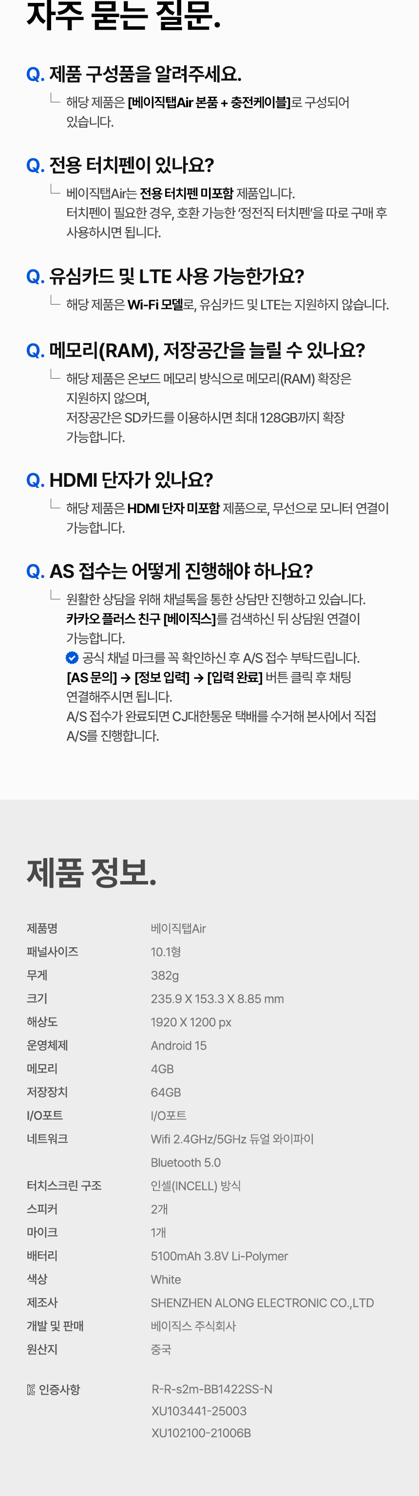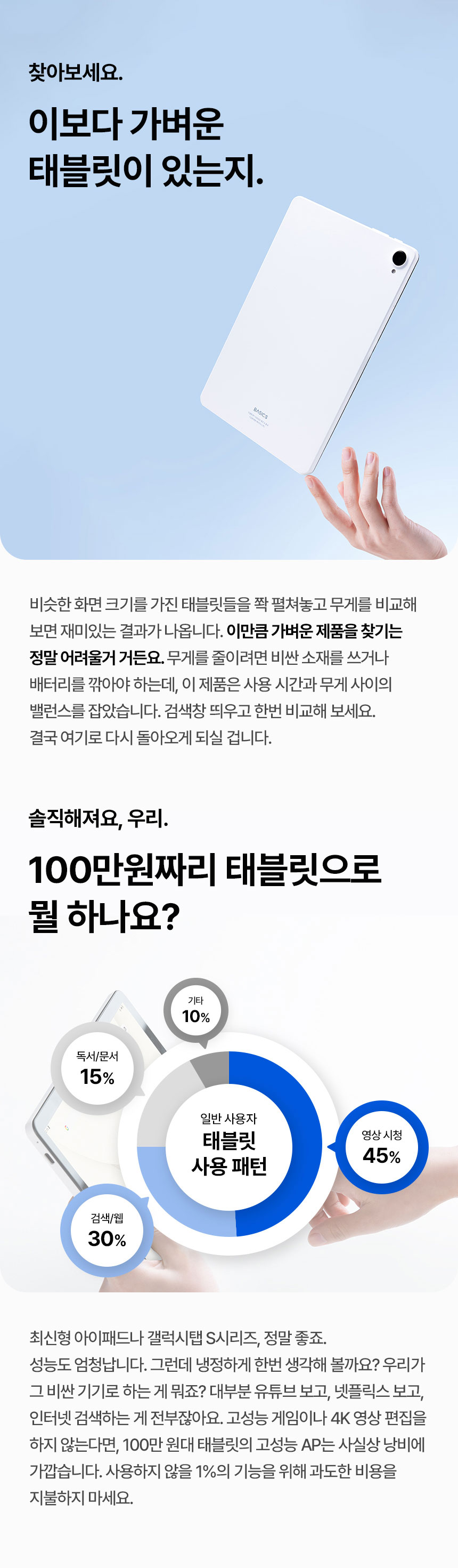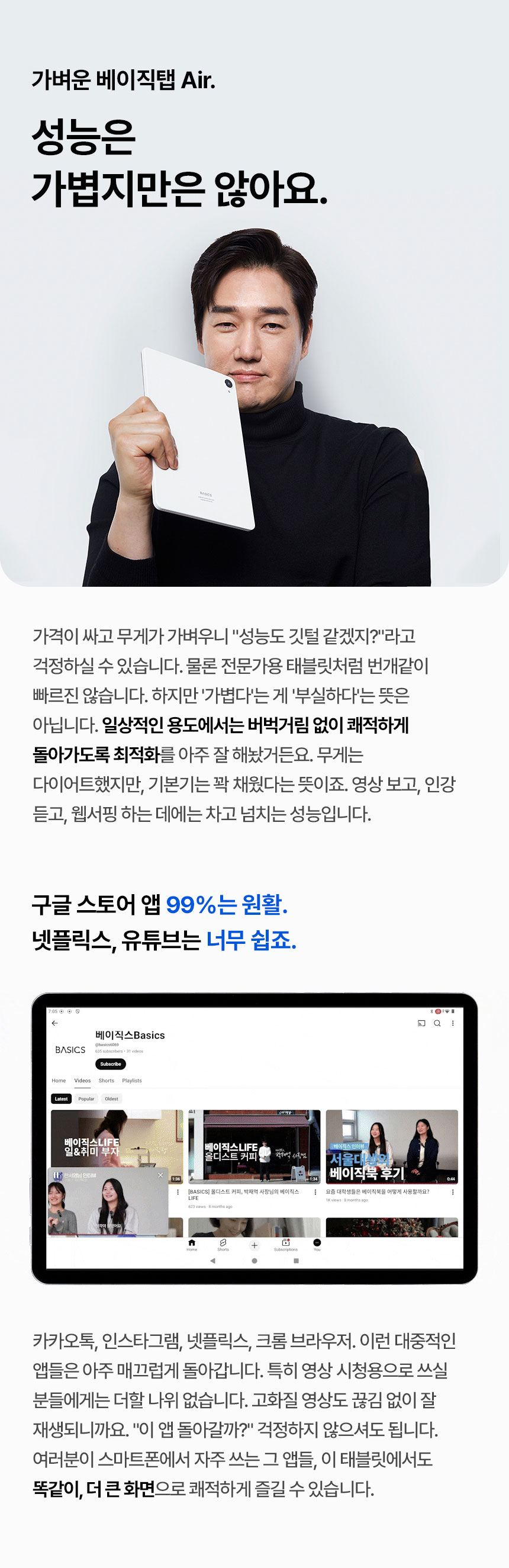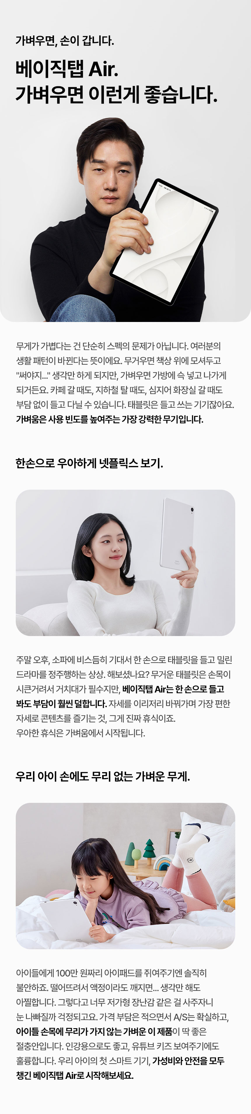 정말 가벼운 태블릿 베이직탭 Air 화이트