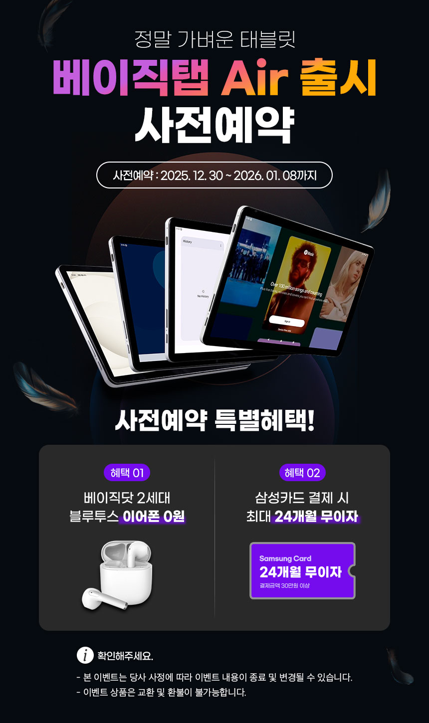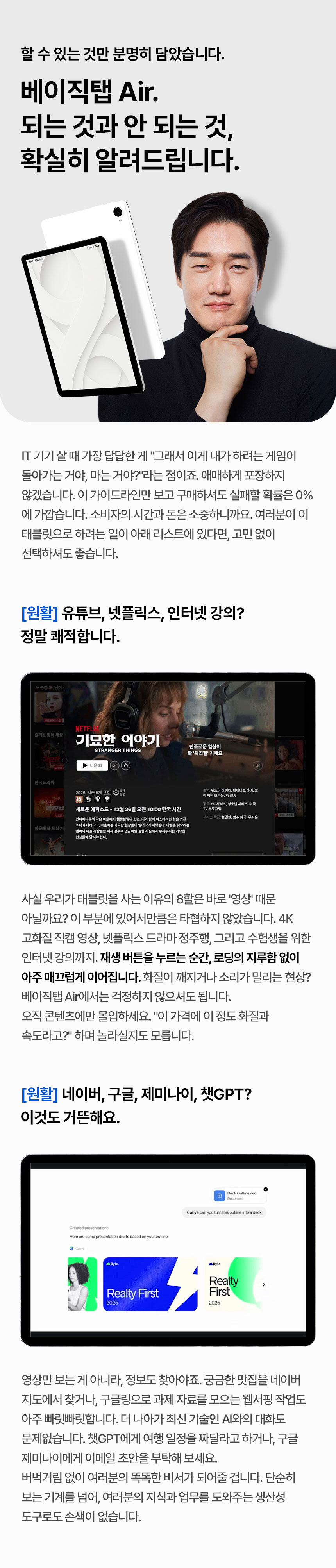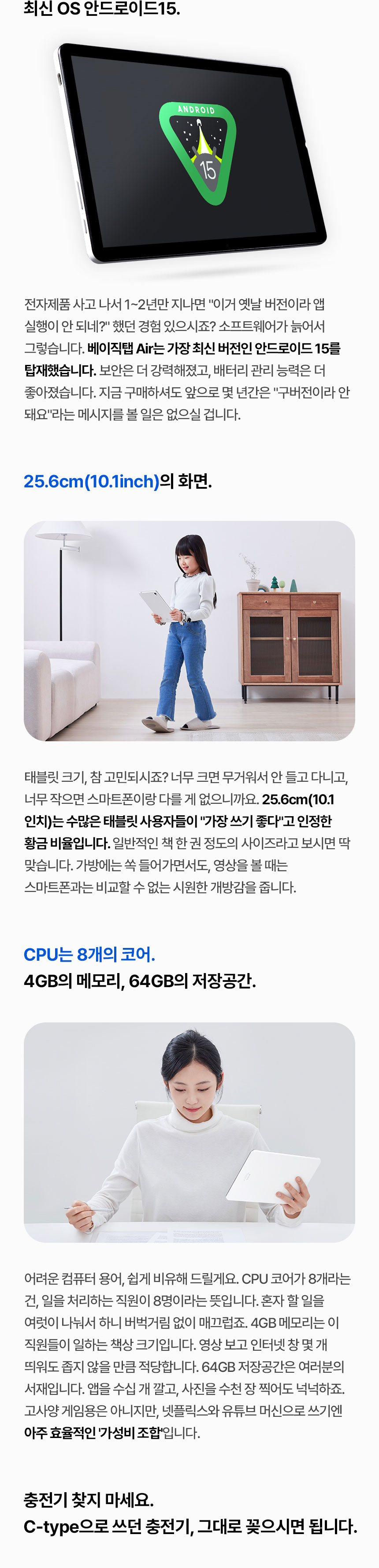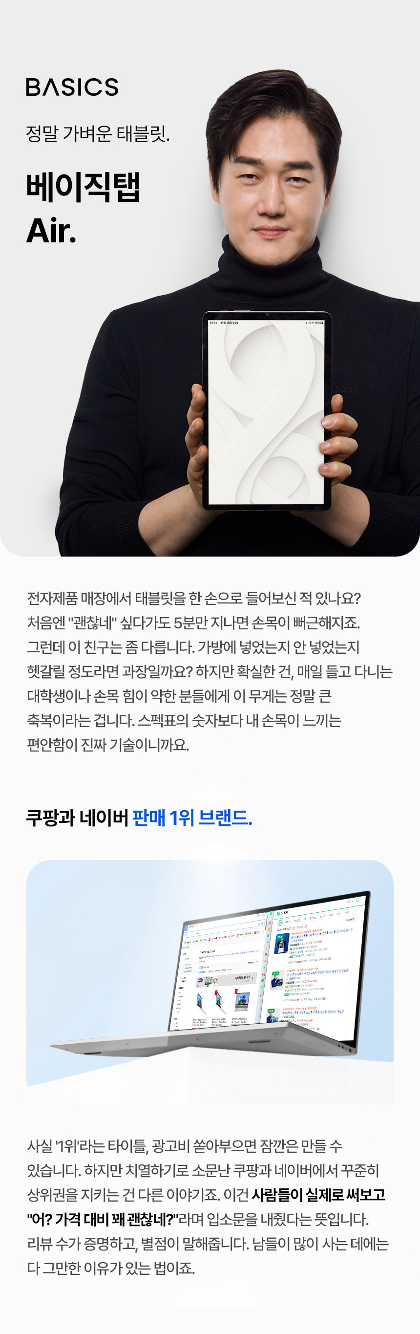 정말 가벼운 태블릿 베이직탭 Air 화이트
