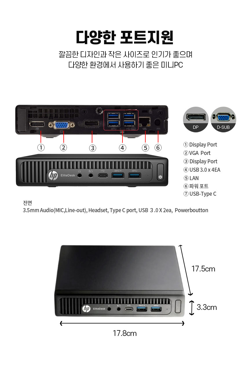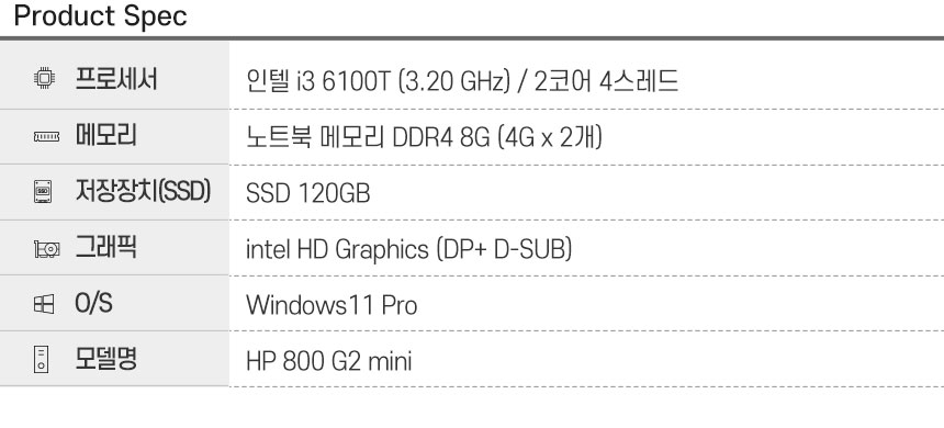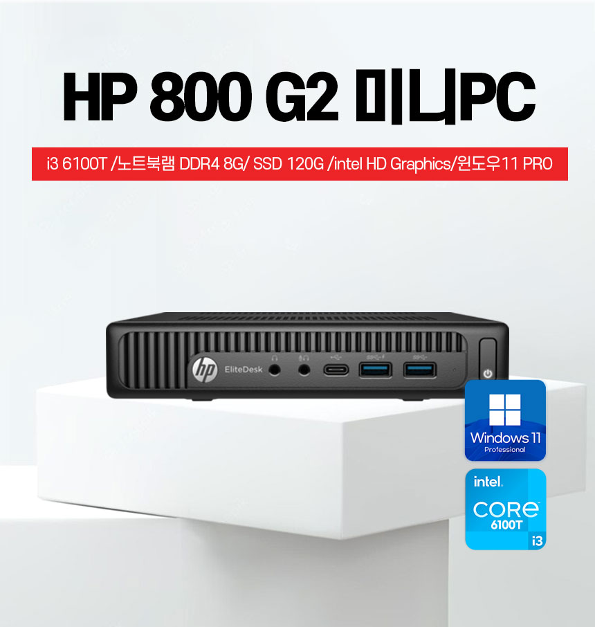 HP 미니PC 800 G2 mini/ i3 6100T/노트북램 DDR4 8G /SSD 120G /윈도우11 PRO