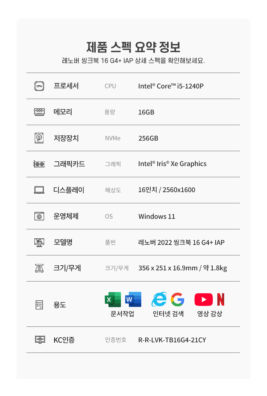 모델명 : 레노버 씽크북 16 G4+IAP