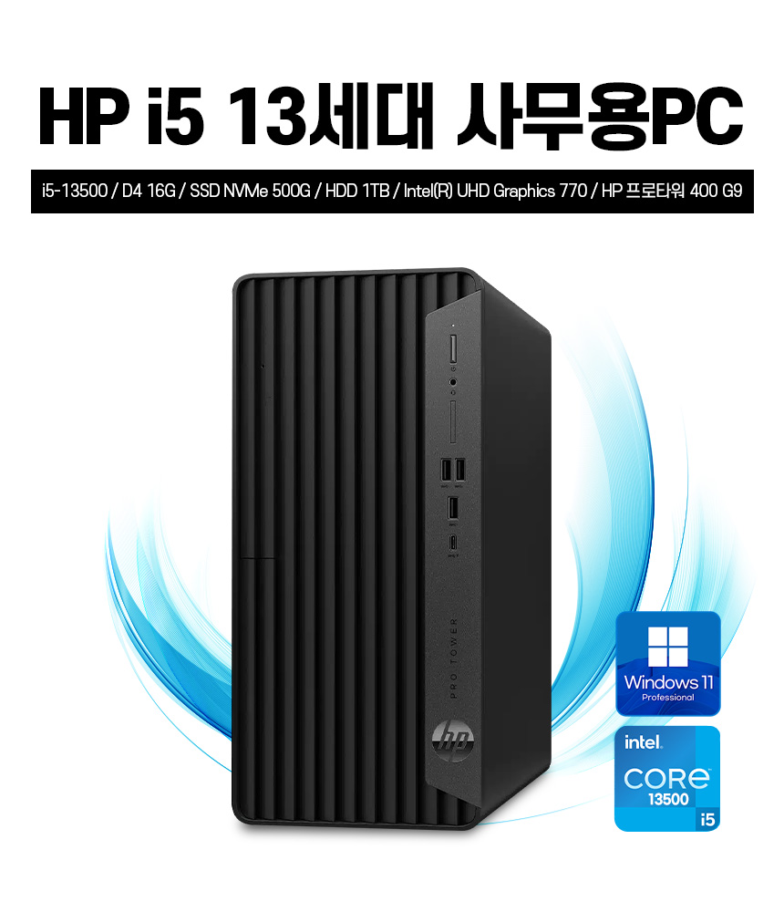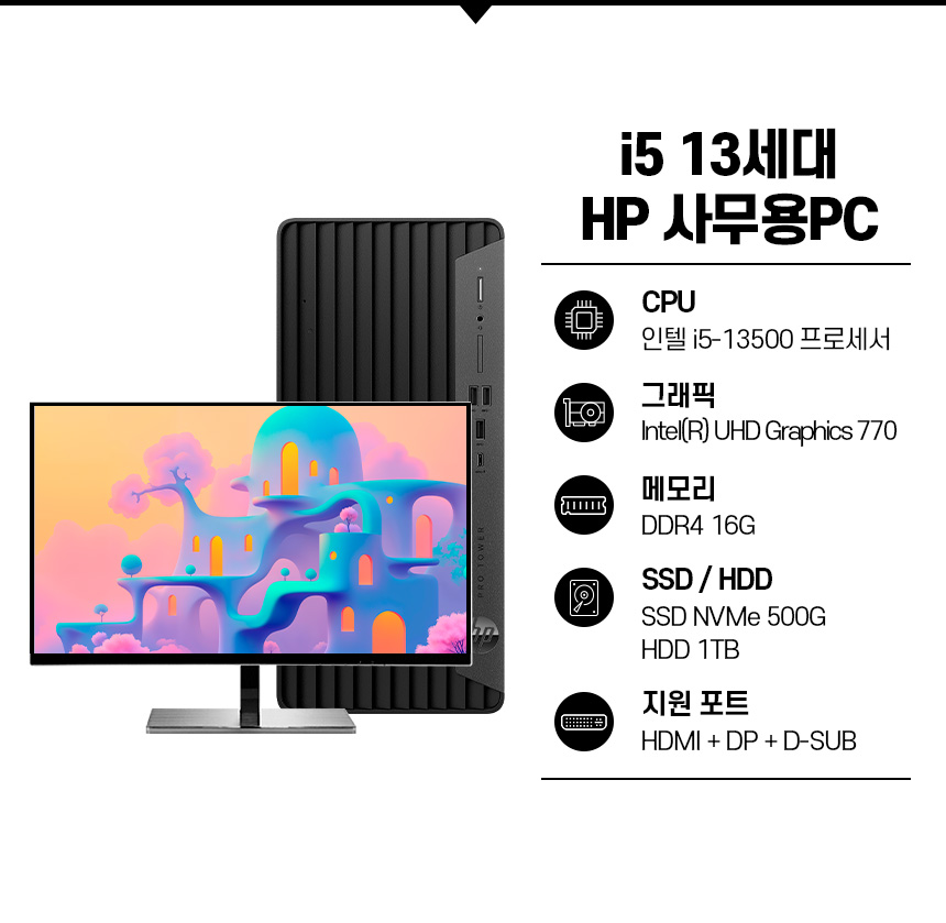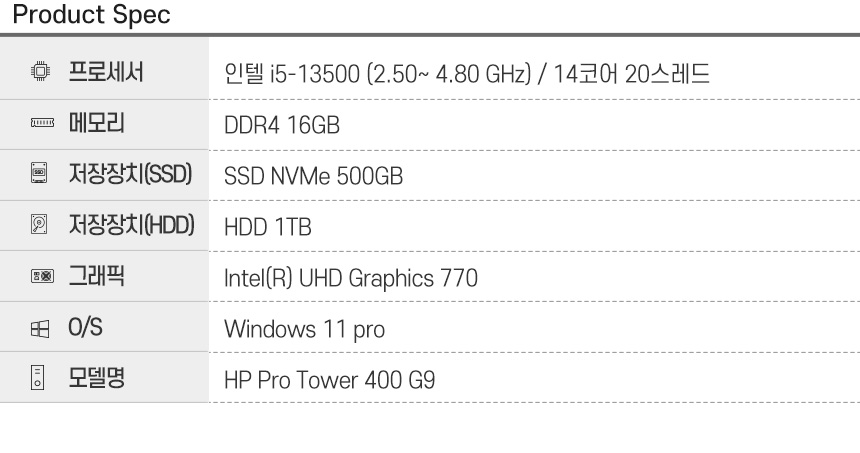 인텔 i5-13500 랩터레이크/메모리 16G/SSD NVME 500G/HDD 1TB/UHD770/윈도우11 PRO/트리플 모니터 지원