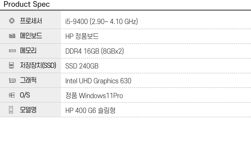 (100대 한정) HP 9세대 i5 갓성비 사무용 듀얼 모니터 지원