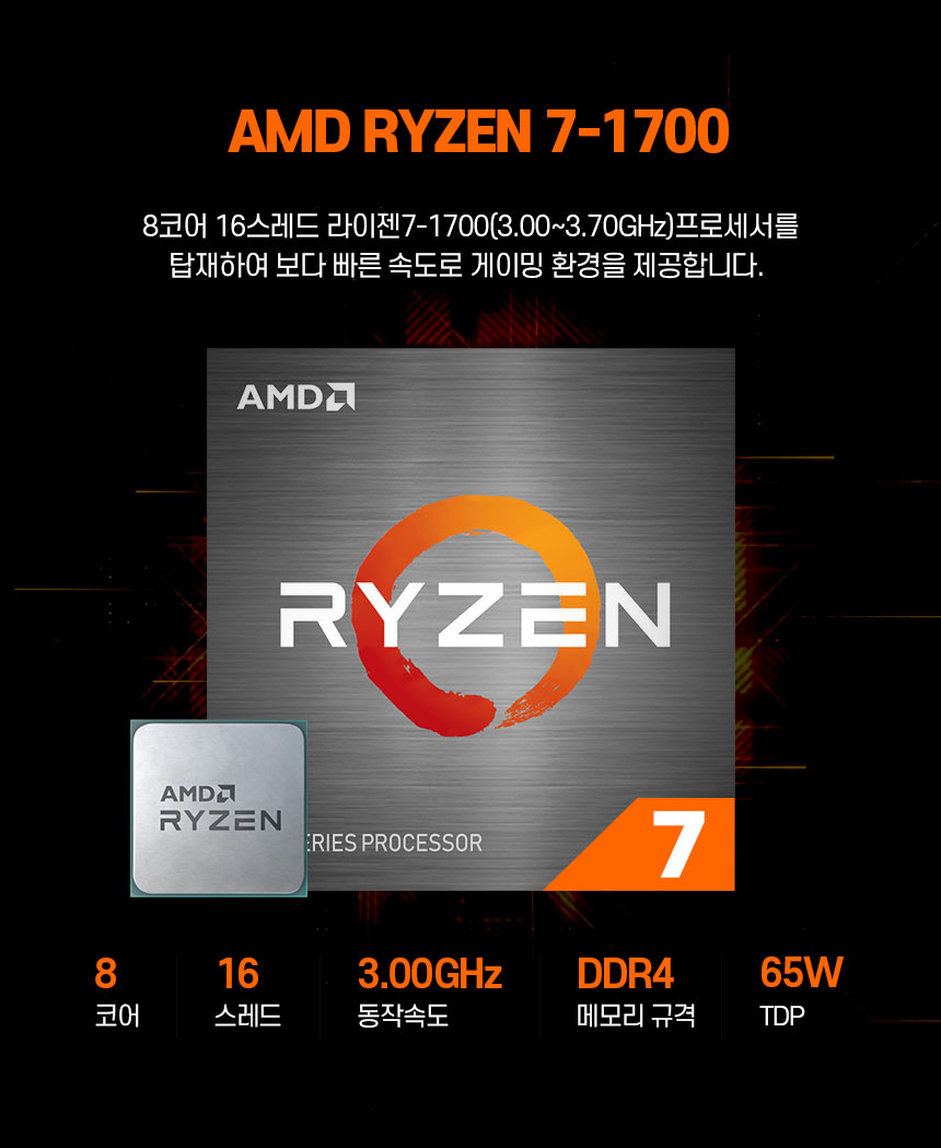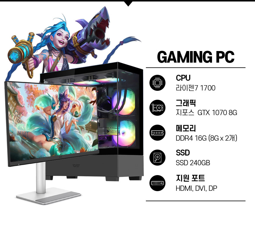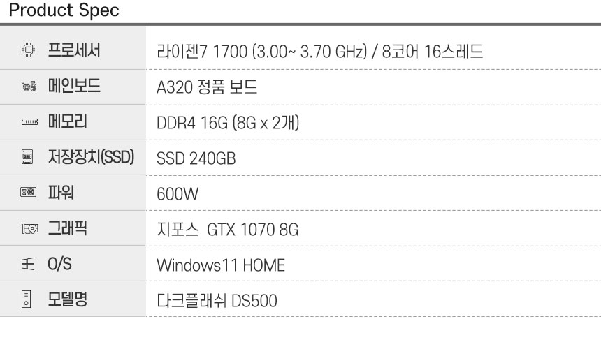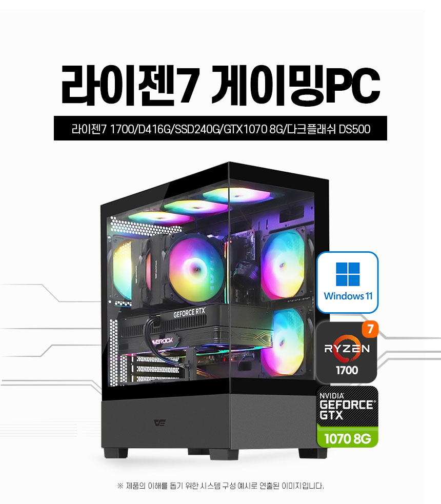 라이젠7 1700/메모리 16G/SSD 240G/GTX 1070 8G/파워 600W/다크플래쉬 DS500(블랙)/듀얼모니터 지원