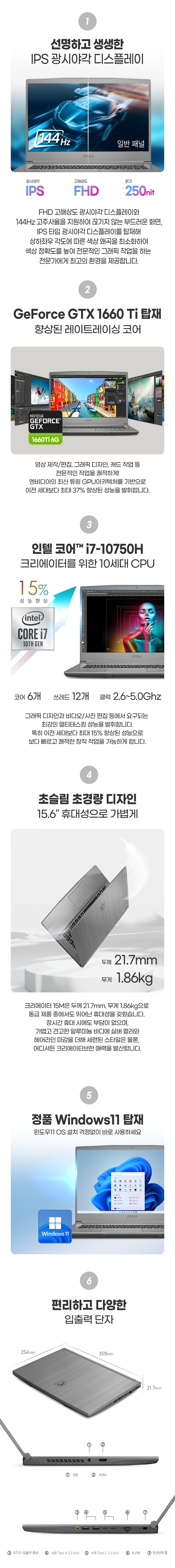 GTX 1660Ti 그래픽 장착 MSI 크리에이터 15M A10SD 게이밍 노트북