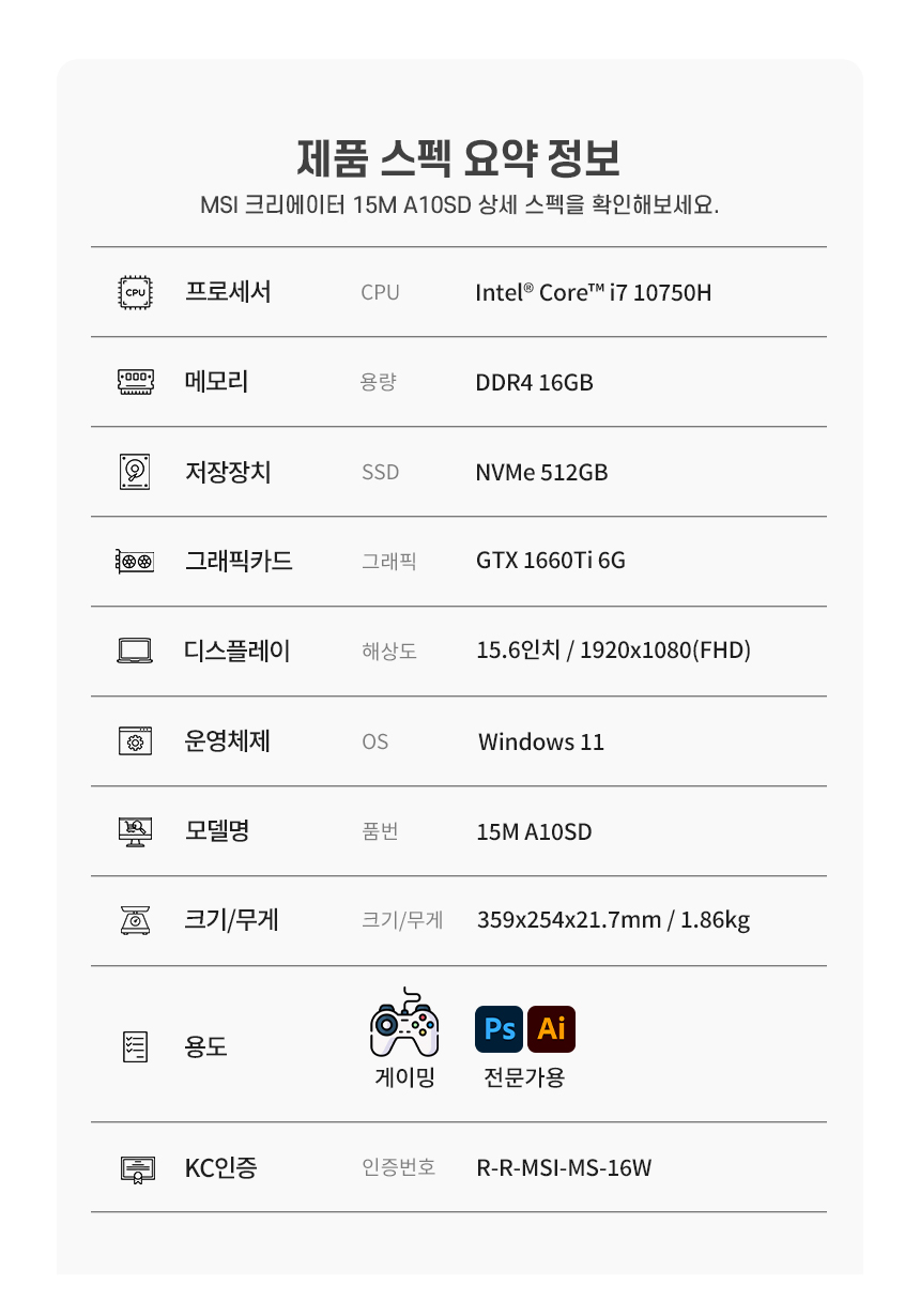 모델명 : MSI 크리에이터 15M A10SD