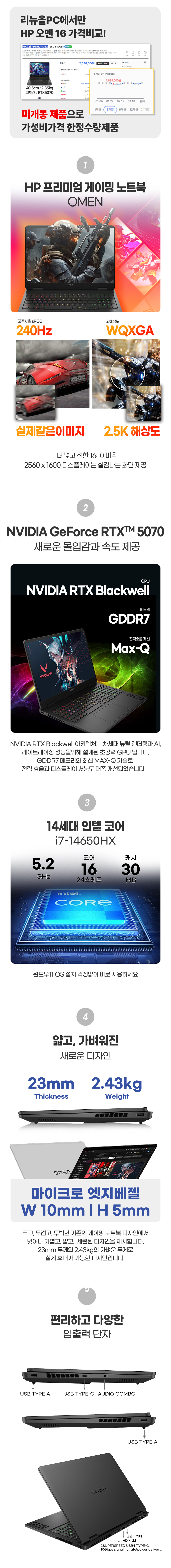 ★미개봉★14세대 게이밍 노트북 RTX 5070 장착 HP 오멘 16