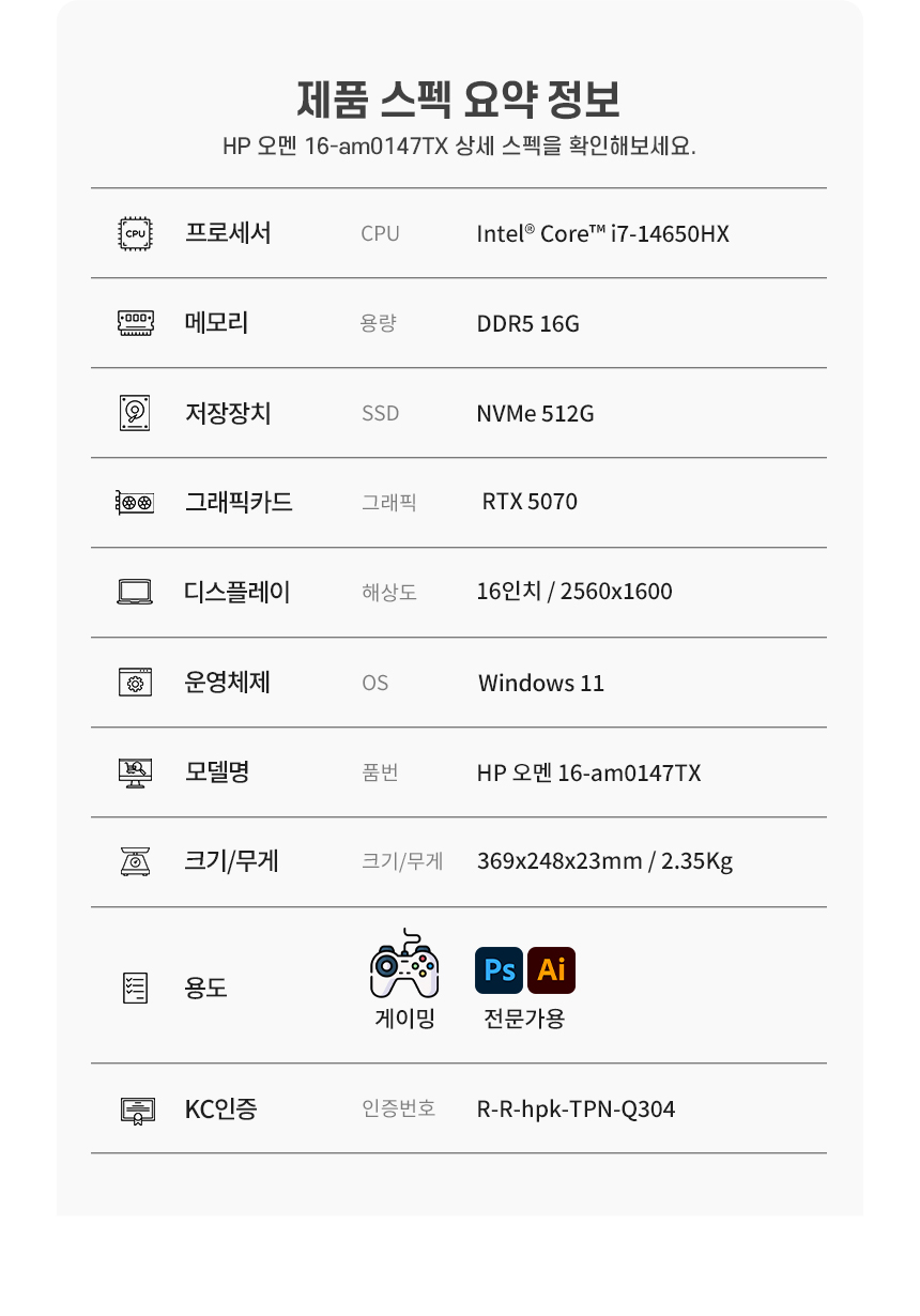 i7-14650HX/D5 16G/SSD NVMe 512G/RTX 5070/16"/2560x1600/윈도우11