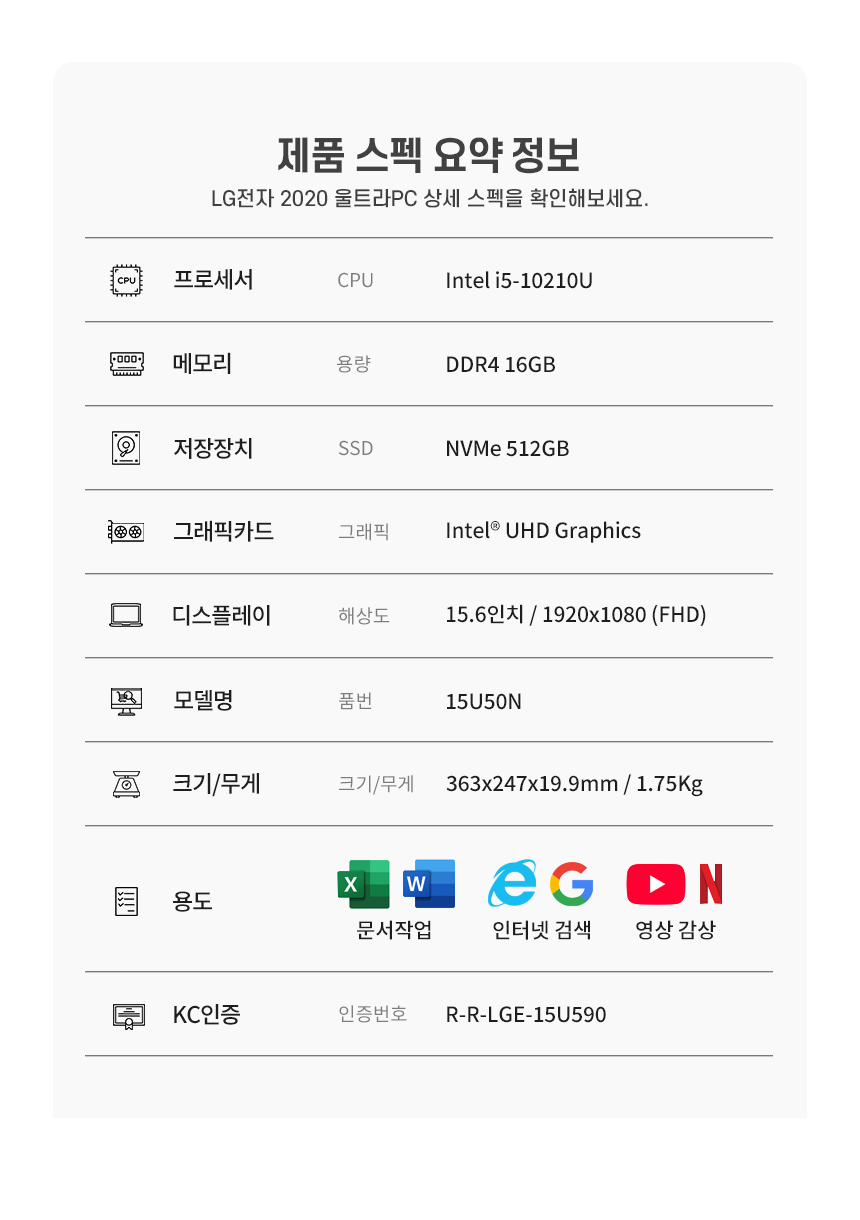 i5-10210U / D4 16G / NVMe 512G / Intel® UHD Graphics /15인치 /1920x1080 / 윈도우11