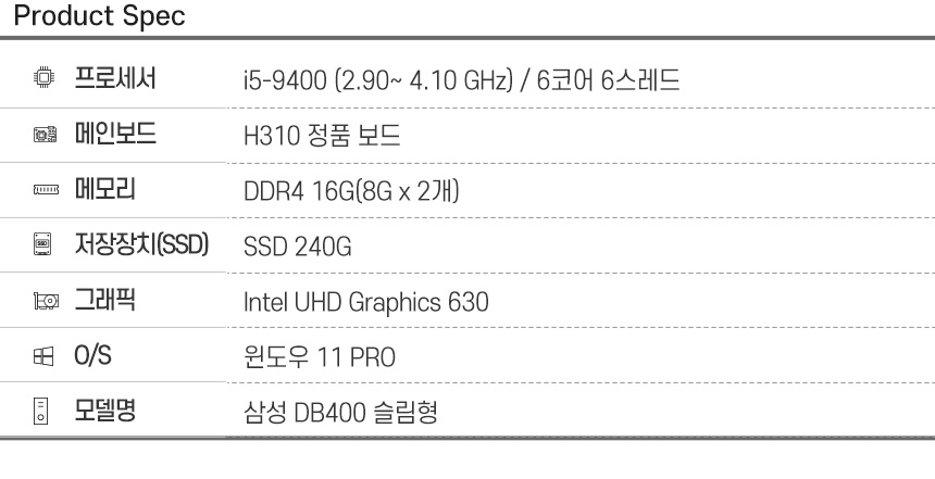 (50대 한정) 삼성 9세대 I5 9400 슬림형 윈도우11 PRO